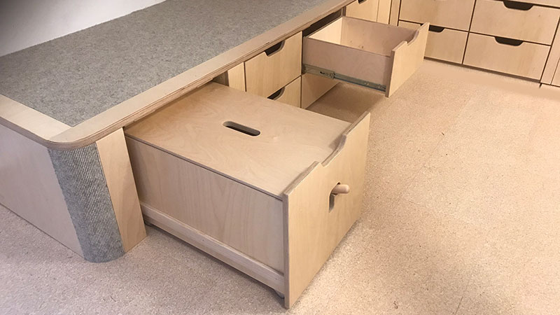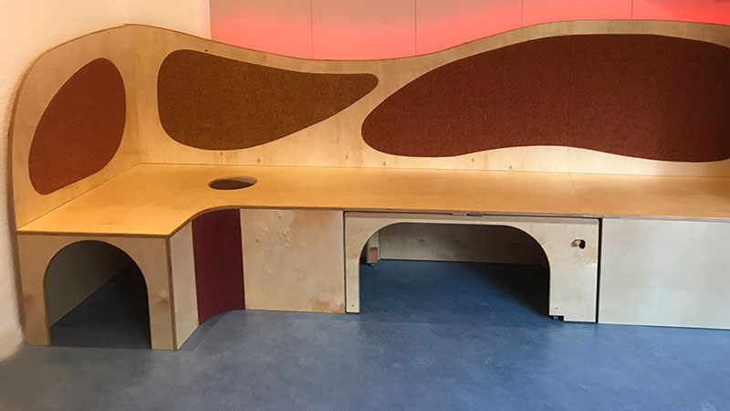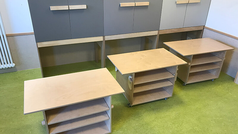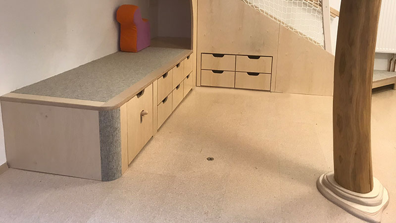 Wir arbeiten mit Krippen, Kindergärten, Horten und Schulen an der Planung und Umsetzung von Raumkonzepten, die den jeweiligen pädagogischen Konzeptionen entsprechen und diese mittragen. Dabei berücksichtigen wir selbstverständlich die geltenden Sicherheitsvorgaben und –vorschriften. Bei der Entstehung unserer maßgetischlerten Unikate liegt unser Hauptaugenmerk auf der gemeinsamen Erarbeitung einer individuellen und für Ihre Einrichtung optimierten Lösung. Wir möchten Ihre Räumlichkeiten nicht einfach nur möblieren, sondern modellieren, gestalten und zu einem sinnlichen Erfahrungsraum für die Kinder machen.